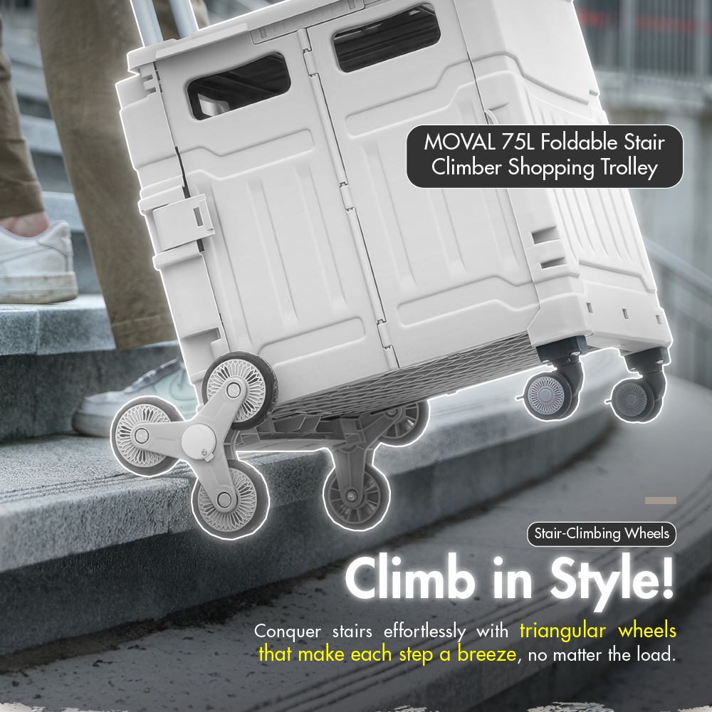 Introducing your new shopping companion upgrade: Moval 75L Foldable Stair Climber Shopping Trolley!
