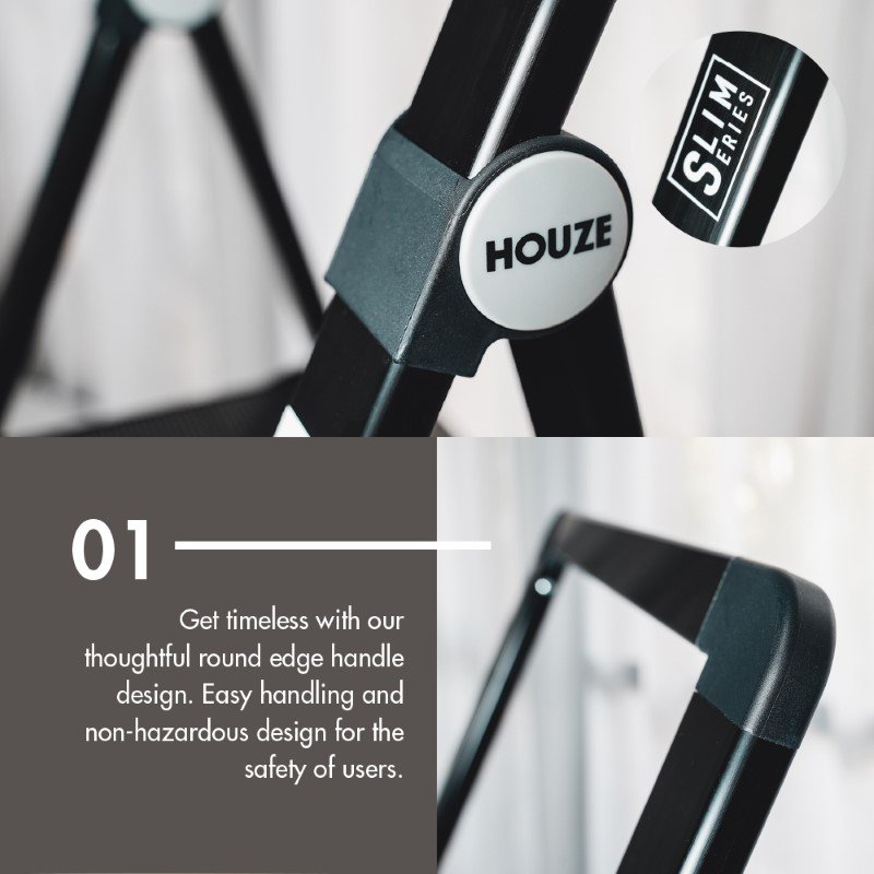 Singapore’s city heartbeat requires solutions combining seamless practicality with a space-conscious mindset. Introducing the HOUZE ‘SLIM’ Aluminium 2/3/4-Tier Ladder Collection. a masterstroke in household innovation. Moulded from the finest Aluminium Alloy. Virgin Polypropylene. and robust Metal components. here’s where lasting quality meets sheer elegance.