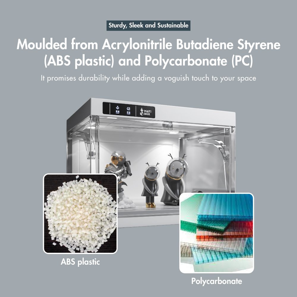 The SoleMate IllumiCube is not just any shoe display; it’s a testament to the ultimate combination of functionality and elegance. Each box is crafted with the unparalleled strength of Acrylonitrile Butadiene Styrene (ABS) and Polycarbonate (PC). ensuring durability and a sleek finish. Including LED lights takes this piece a notch higher. allowing your prized footwear to shine in all its glory.