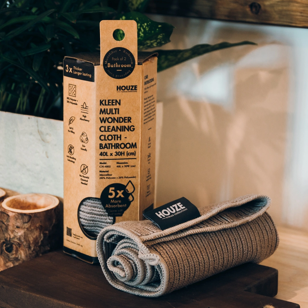Embark on a transformative journey towards a spick-and-span home with HOUZE – KLEEN Multi Wonder Cleaning Cloth – Bathroom collection. Say a cheery farewell to your age-old cleaning troubles as we unveil an array of precision-engineered microfiber cloths tailored just for your Singaporean abode. Sparkling kitchen tops. pristine windows. immaculate tiles – consider it done. All it takes? A splash of water on our cloth to master even the most challenging grime.