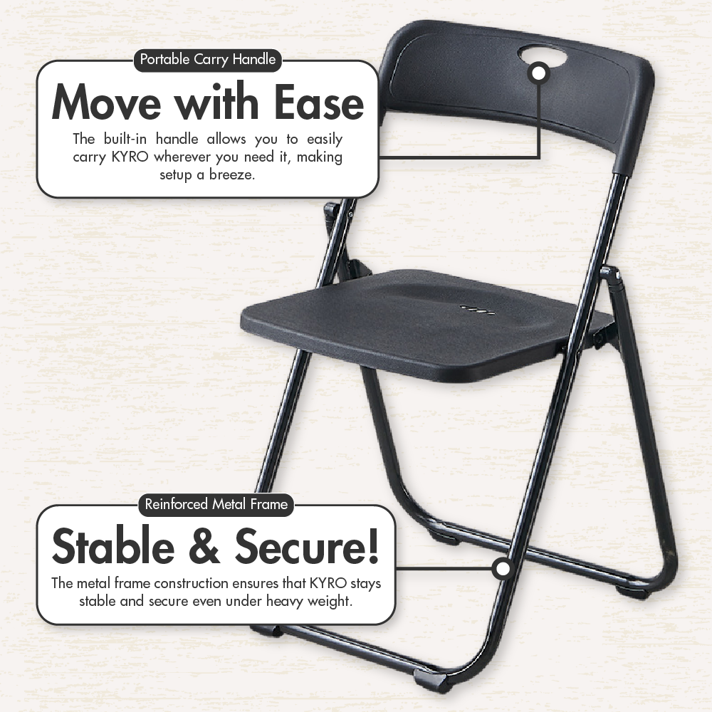 HOUZE – KYRO Foldable Plastic Chair with Metal Frame (5 Colors)